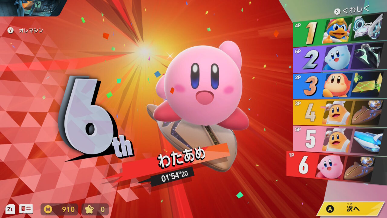 まぁ6位でもリザルトのカービィは嬉しそうに笑ってくれているので良しとします!!!