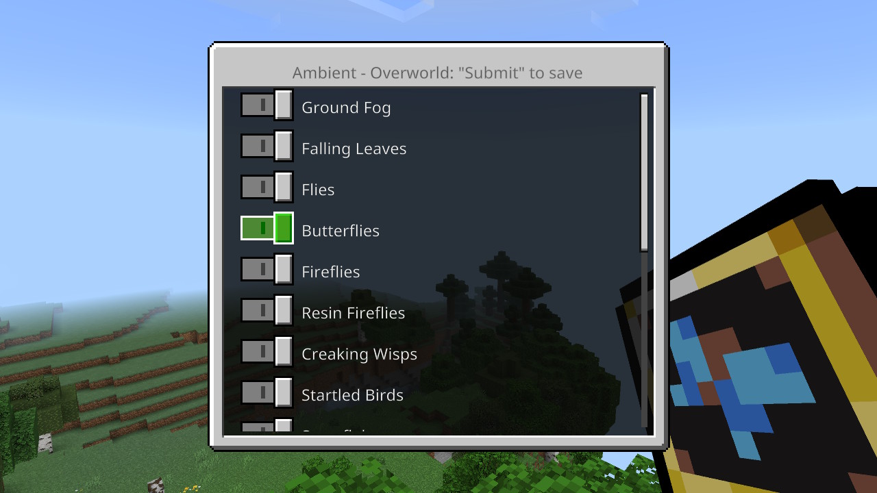 ちなみに…今回は新規ワールドを散歩することで見てみていたのですが…個人的に遊んでる既存のワールドにも「リアリズム VFX 1.2」を導入してみました。