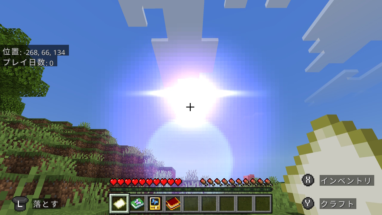 switch版での動作についてです。動作するかしないかでいうと…動作します。ただもともとJAVA版でも”影MOD”は重いと言われているとおり、やはり拠点を発展していく過程でカクついたり、処理落ちしてしまいそうな予感がしました。